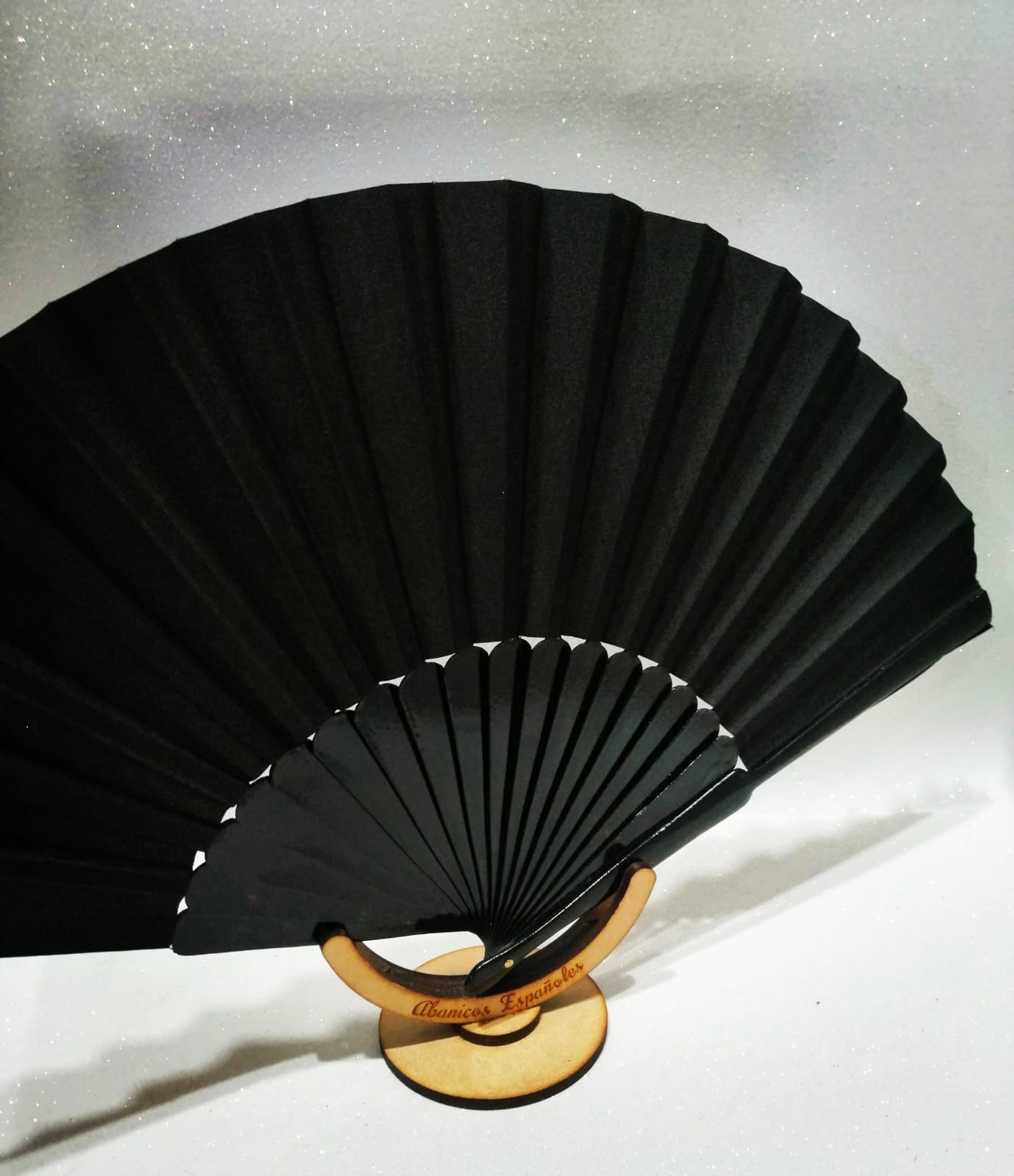 Abanico de Madera con Tela Pericón (grande) Color Negro