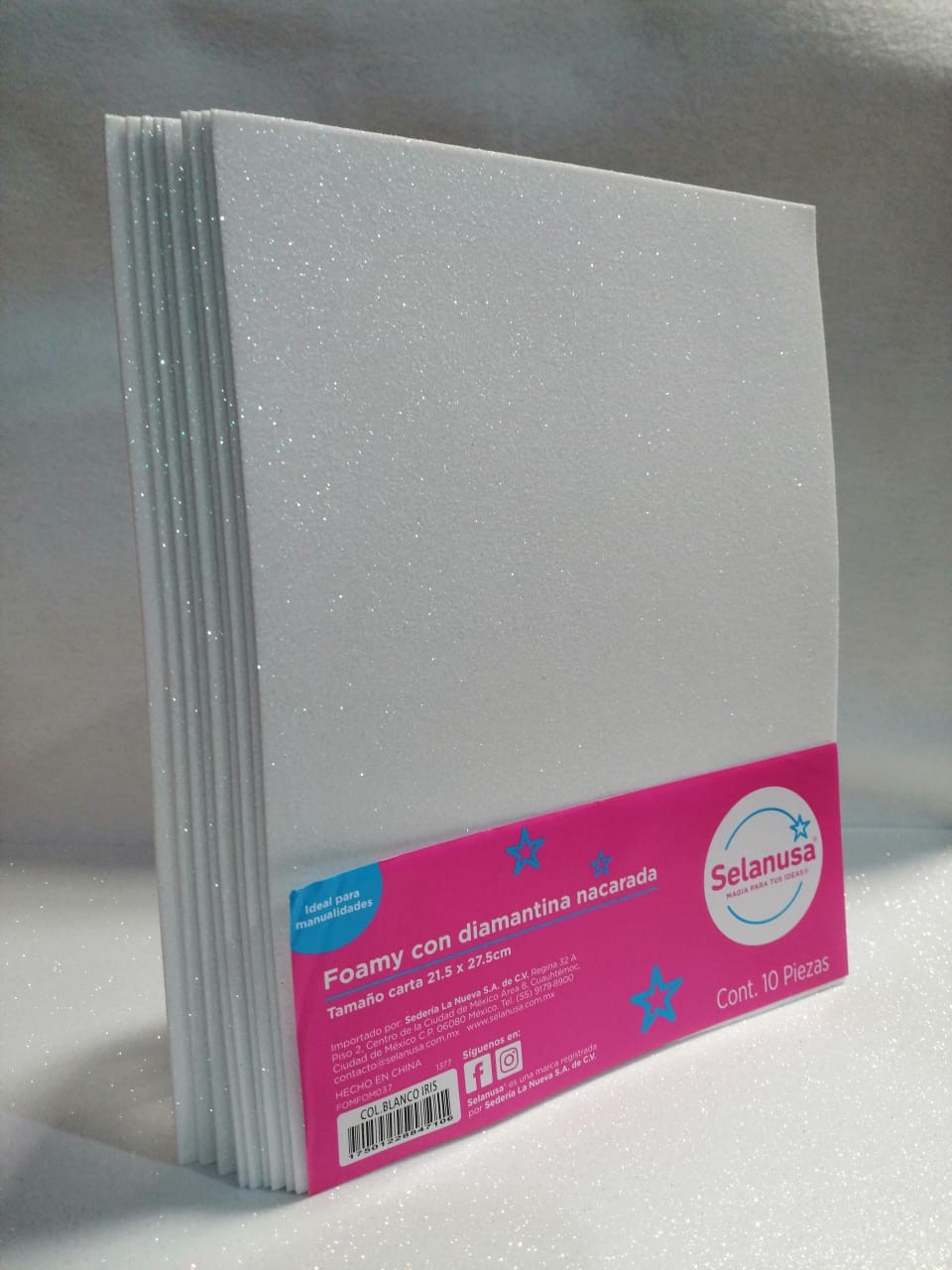 Foamy con Diamantina Nacarada Tamaño Carta Blanco Iris 10 piezas