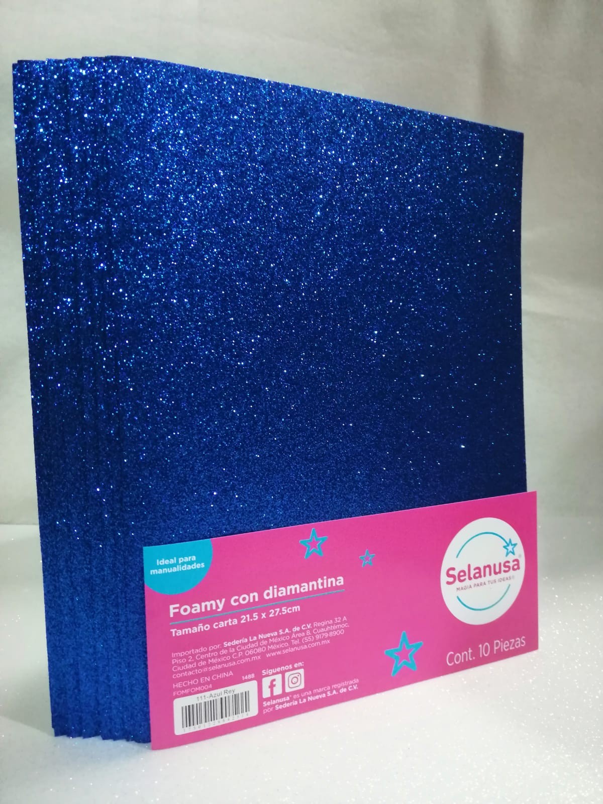 Foamy con Diamantina Tamaño Carta Azul Rey 10 piezas