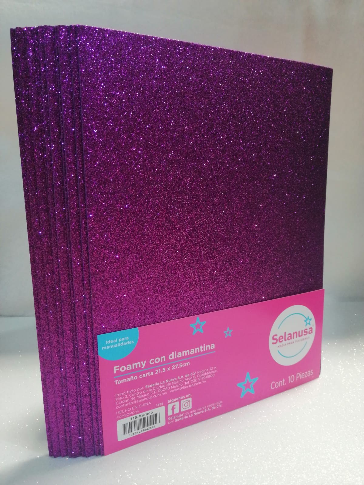 Foamy con Diamantina Tamaño Carta Morado 10 piezas